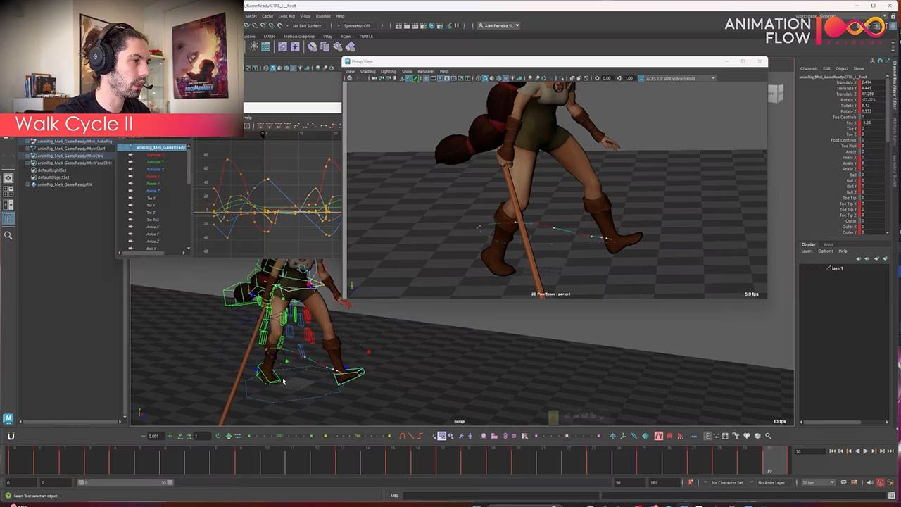 In this session, Alex covers how to polish the walk cycle, refining the feet, and how to create seamless loops that will work in-game.